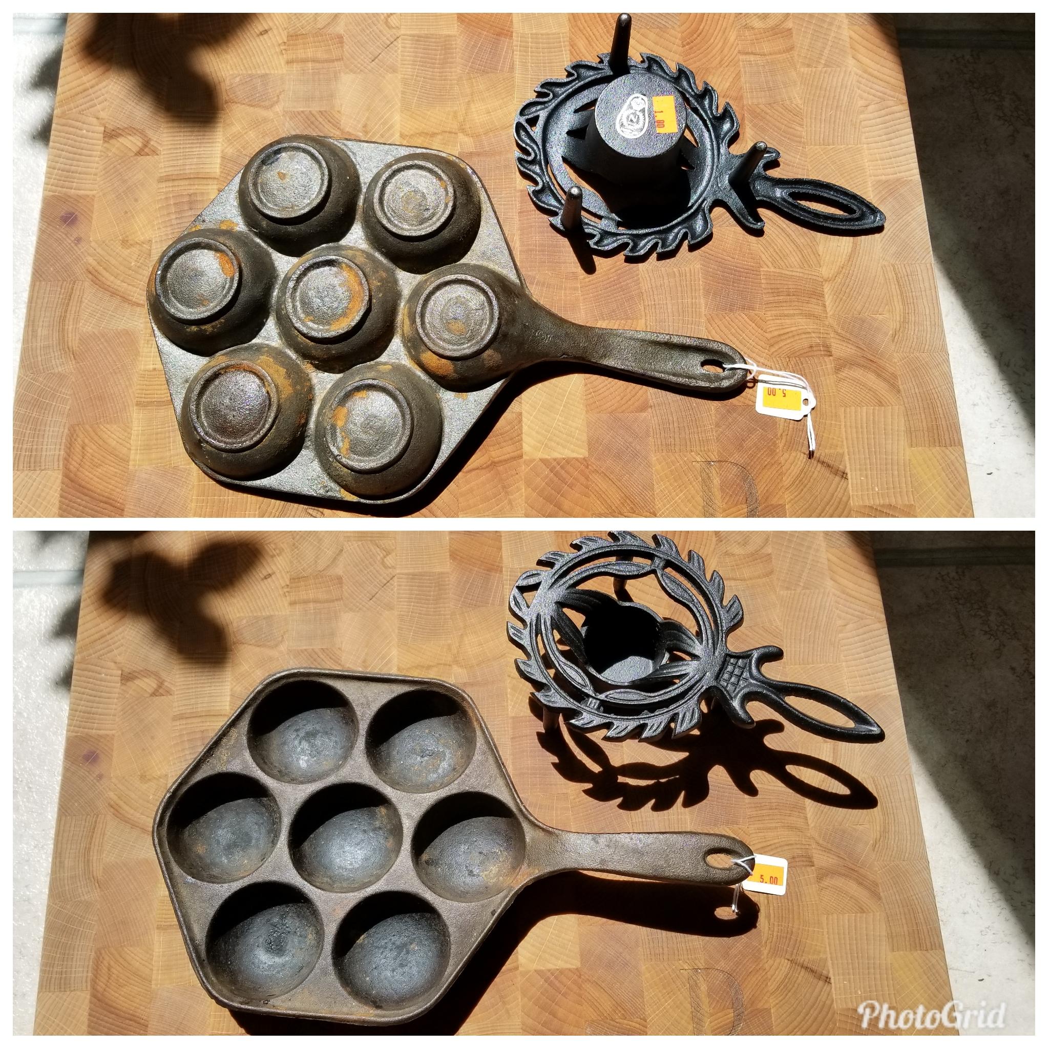 One was called an apple cake pan or egg poacher, the other a danish cake pan.